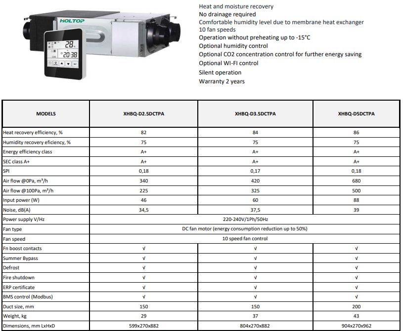 HOLTOP Eco-Smart ERV XHBQ-D5DCTPA ventilatsiooniseade 500 m3/h, hind 828 eur + km