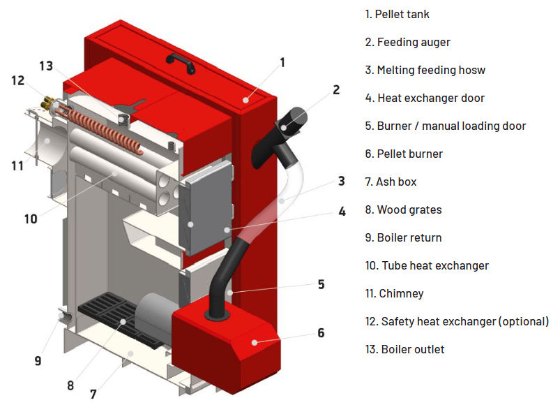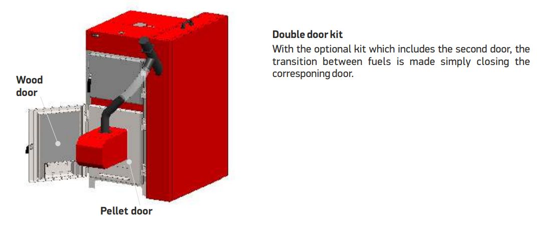 Võimalus tellida topelt ustega katel, puu+pelletiküte.
