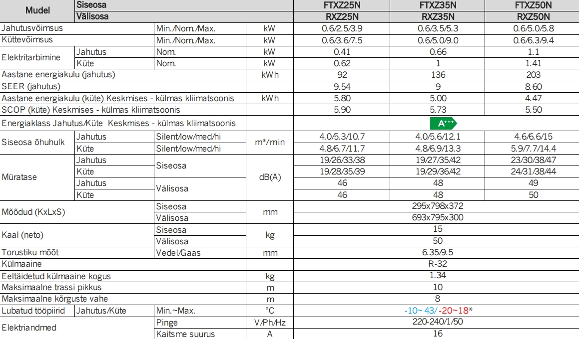 Daikin FTXZ-N Ururu Sarara (-20 ⁰C) seeria õhksoojuspumbad