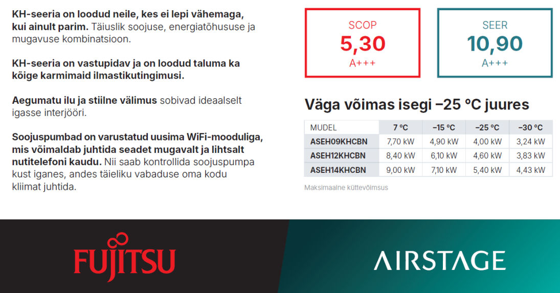 Lisainfot leiad: Fujitsu NORDIC AIRSTAGE KH R32 series info