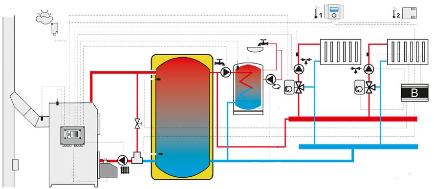 Kombikatel puidu ja pelletiga kütmiseks. Universaalkatel hoonele kuni ca 200 m2, seadmed ja paigaldus